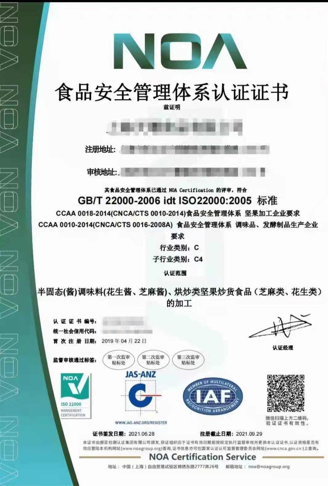 ISO22000食品安全管理体系